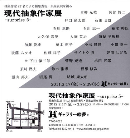 ギャラリー絵夢で、現代抽象作家展 -surprise 5- が行われます。
