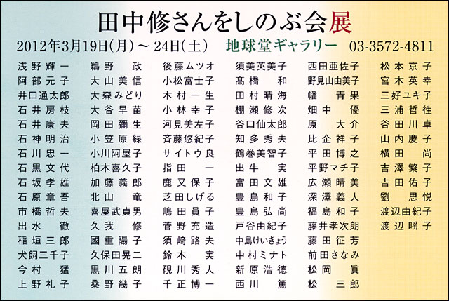 地球堂ギャラリーで、田中修さんをしのぶ会展が行われます。