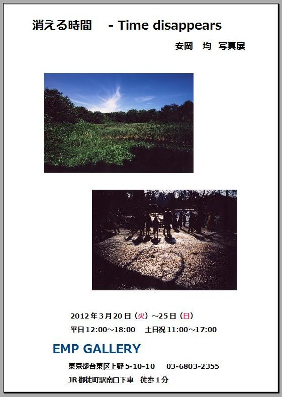 EMP GALLERYで、消える時間 -Time disappears 安岡 均 写真展が行われます。