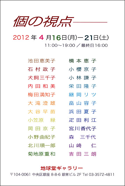 ●会場:地球堂ギャラリー(中央区銀座8-8-6銀栄ビル2F 電話03-3572-4811)