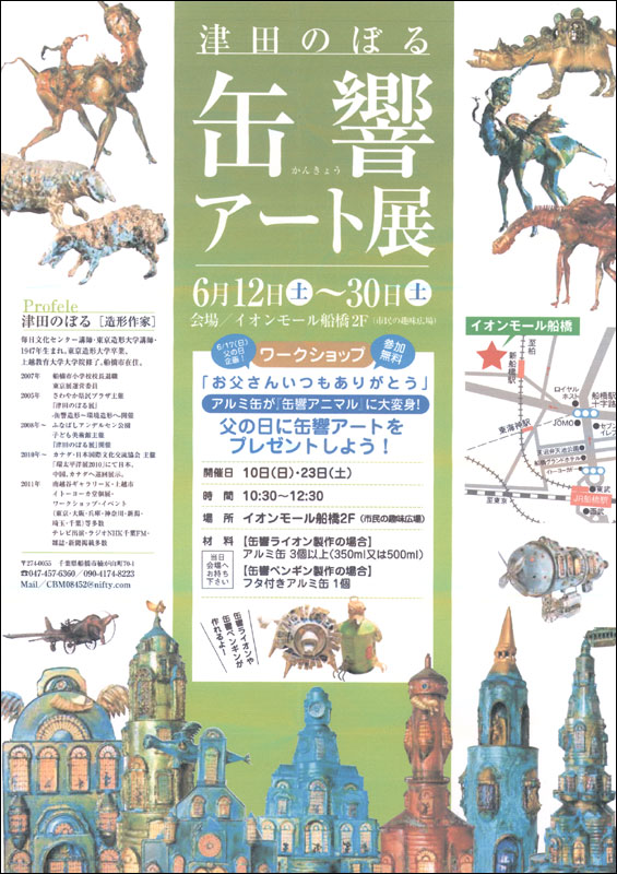 イオンモール船橋2Fで、津田のぼる缶響アート展が行われます。