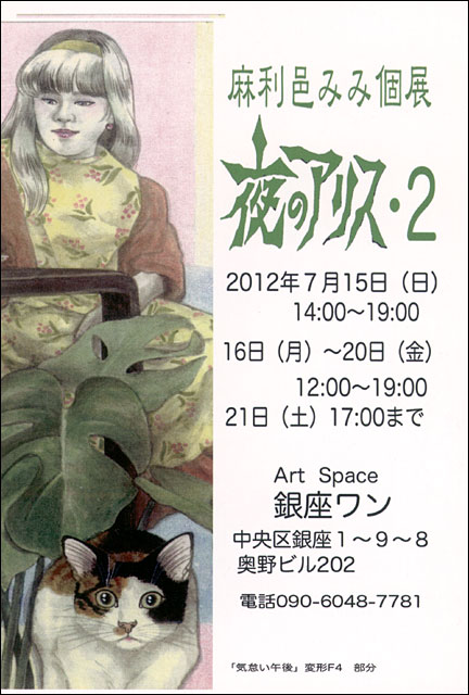 アートスペース銀座ワンで、麻利邑みみ個展 夜のアリス・2が行われます。