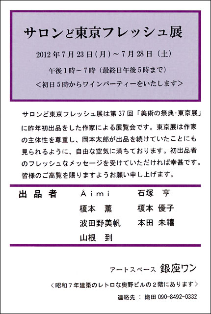 ●日時:2012年7月23日~7月28日(13時~19時 最終日~17時)
