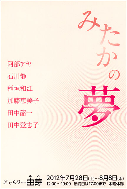 ●日時:2012年7月28日~8月8日(12時~19時 最終日~17時 木曜休廊)