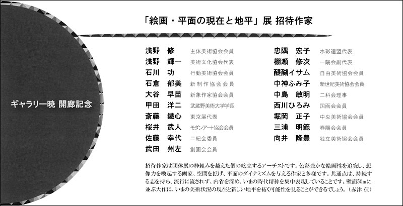 ギャラリー暁で、「絵画・平面の現在と地平」展が行われます。